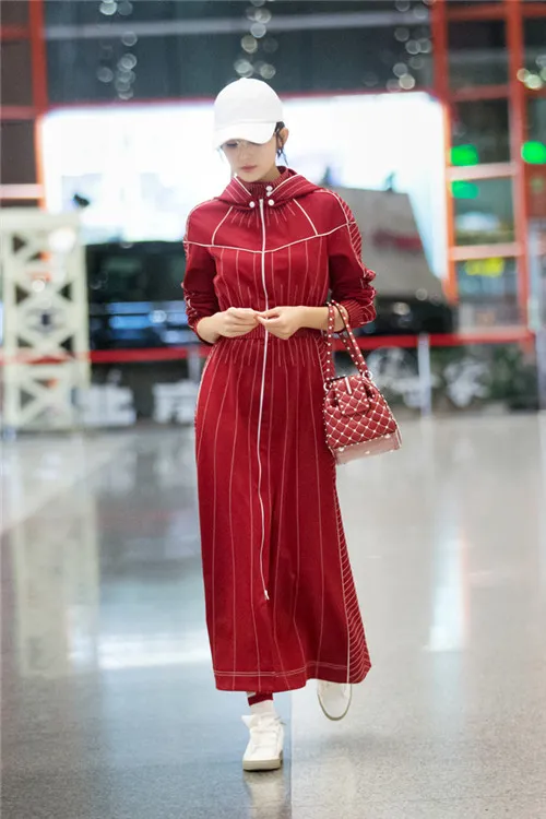 9月11日傍晚,娜扎现身北京机场,身着红色兜帽长裙分外夺目,搭配白色棒球帽以及白色运动鞋又不失俏皮,虽然穿着红火张扬,