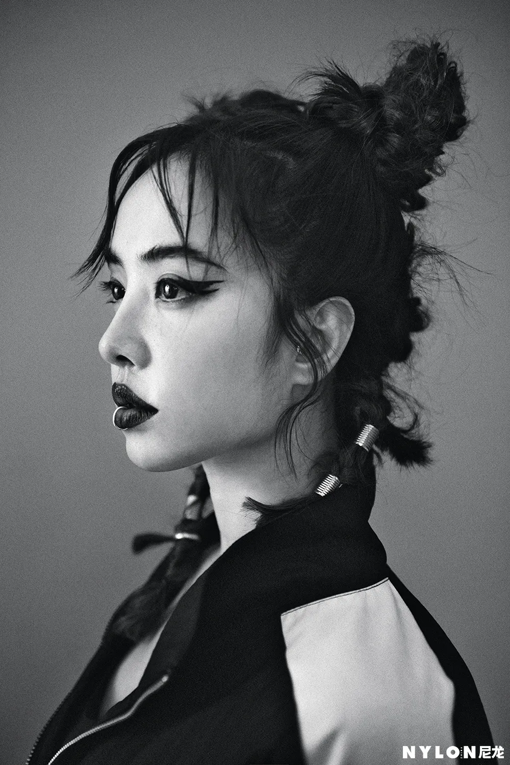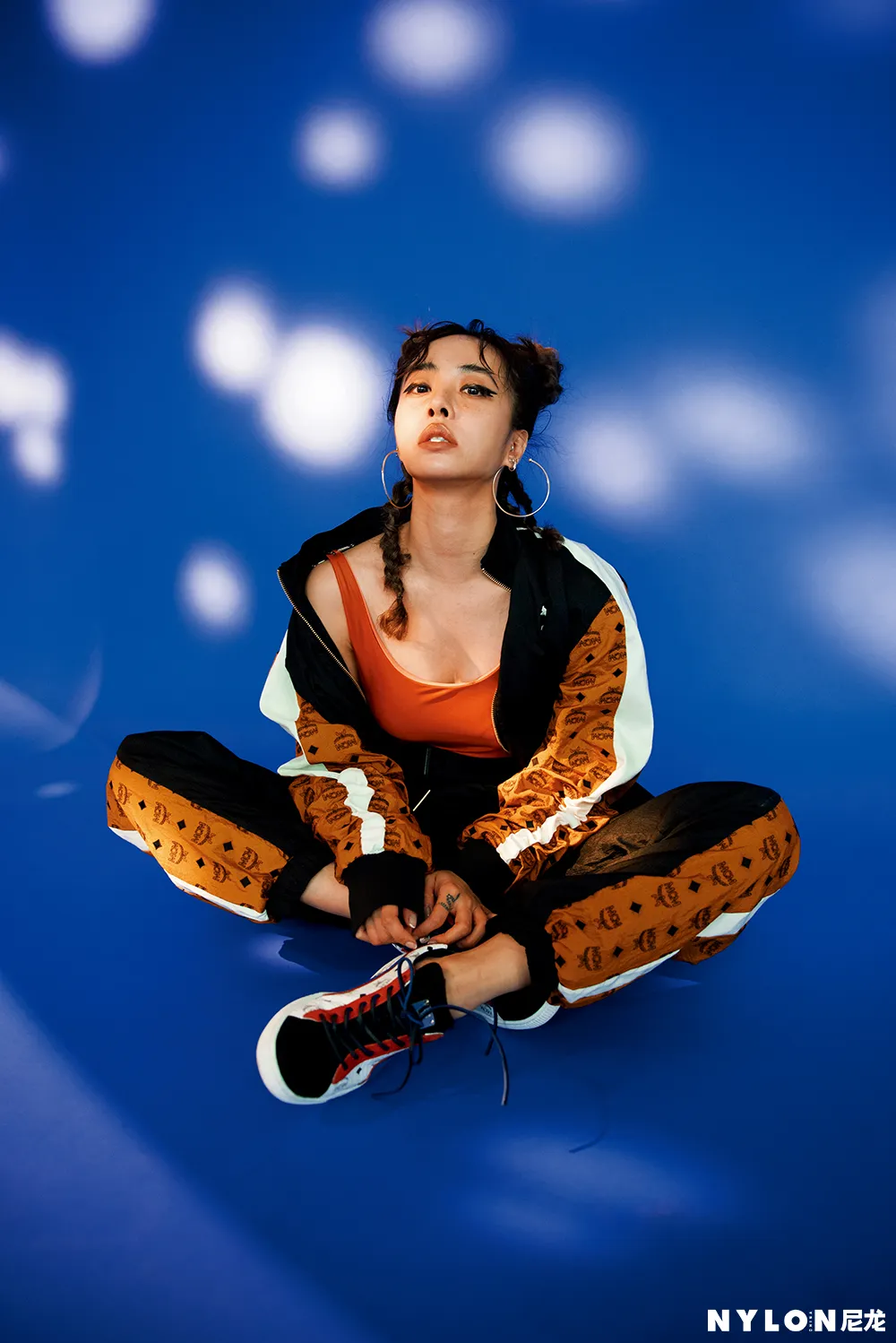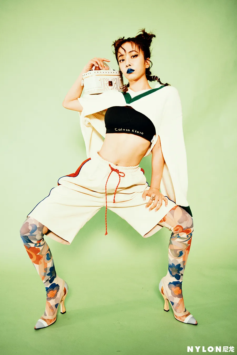 封面拍摄中,蔡依林以Bodysuit搭配运动套装造型亮相,橘色的Bodysuit展露出修长的脖颈与性感的锁骨,宽大的运动套装则让纤瘦的她散发出勃勃力量,在俏皮活泼 “哪吒头”的衬托下,自带率性青春感,宛若街头的叛逆少女,复古质感的色调让人想起卡带流行的时尚情怀。特殊剪裁的橘红色皮革洋装搭配靛蓝色的“中毒唇”,犀利的眼神直视镜头,色彩激撞的妆容与服饰让蔡依林看起来肤白如雪,性感魅惑。另一套造型中,蔡依林身穿运动Bra搭配针织衫与短裤,日常的玻璃杯被当作传声话筒,极富特色的彩色袜套高跟鞋完美勾勒出她修长的腿部线条,整体造型时髦清新,充满趣味。