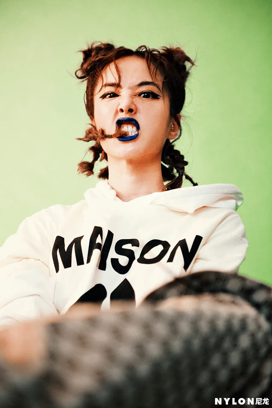 拍摄现场,蔡依林玩兴大发,将用作装饰的头饰当作唇环进行拍摄,出其不意的混搭方式也让画面生动有趣,更有质感。当天,蔡依林的爱犬Whoohoo也参与了拍摄,蔡依林和狗狗的趣味互动也被摄影师的镜头记录下来,小狗的蠢萌可爱与蔡依林的酷劲十足形成反差,组合在一起的画面分外和谐。